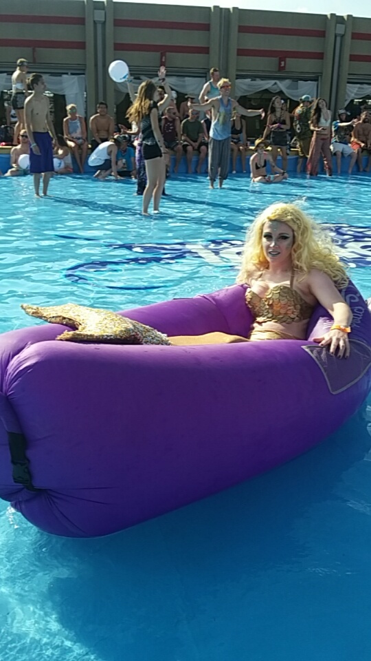 As I scanned the grounds, I noticed that the stage placements were almost perfect. There were also food vendors and drink vendors everywhere so my fears of withering away were out the window. There were multiple pods of porto potties as well as access to real bathrooms for both the GA and VIP. Oh, the glorious water! Right smack in the middle of the venue was a wading pool! A glorious floaty filled wading pool! Dipping in this pool became everyones favorite activity throughout the weekend and I don’t know how many would have survived without it! It doesn’t stop there. The main stage had misting tents! These glorious tents offered a spritz of cool water as you kick back and relaxed close enough to the main stage action, yet far enough away to have some breathing room. I spent quite a bit of time at these tents. They were my pick me up when the heat would become a little too much to handle.