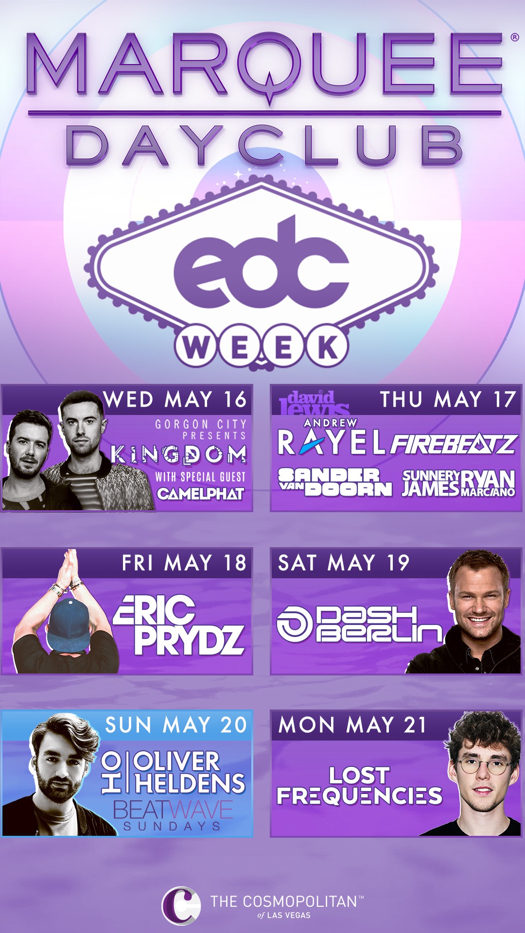 - Gorgon City and CamelPhat – Marquee Dayclub at The Cosmopolitan of Las Vegas