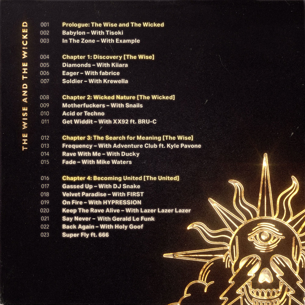Not only has Jauz created 23 original tracks with some of dance music’s biggest stars, but he’s also come up with an awesome dystopian backstory to complement the album. The concept for the album comes from Jauz’s diverse forms of inspiration when creating music, “The Wise” being his more artistic, experimental side and “The Wicked” being his fun, banging party side.