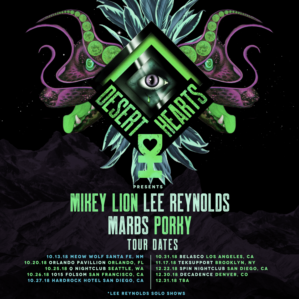 Announced today, the Desert Hearts 2018 Fall US Tour features a wide array of cities to catch their sets at ranging from Tallahassee and Brooklyn to San Diego and Seattle. The DH Crew will also be taking the stage at some festivals during the tour as well, with sets at Dirtybird Campout and Groove Cruise, while they close out the year at Decadence Colorado. Additionally, you won’t want to miss out on their special Haunted Hearts Halloween show to get your spook on!