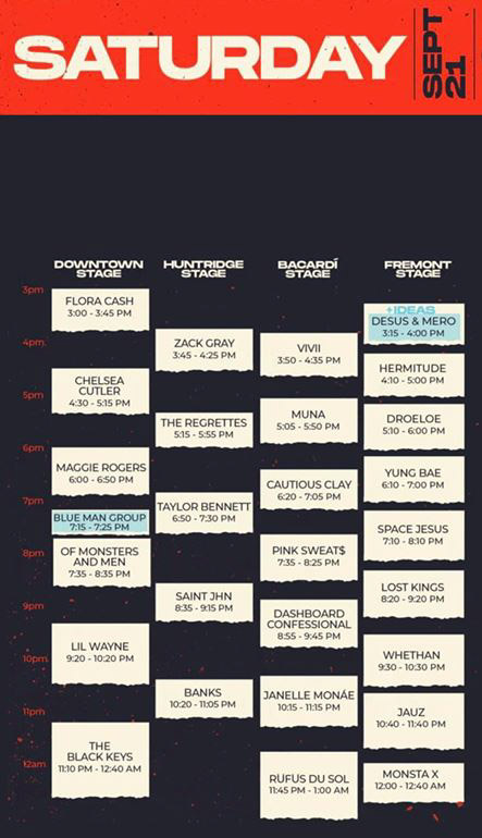 Head over to their website or install the app to make your own personalized schedule, or save the images below for the music set times each day!
