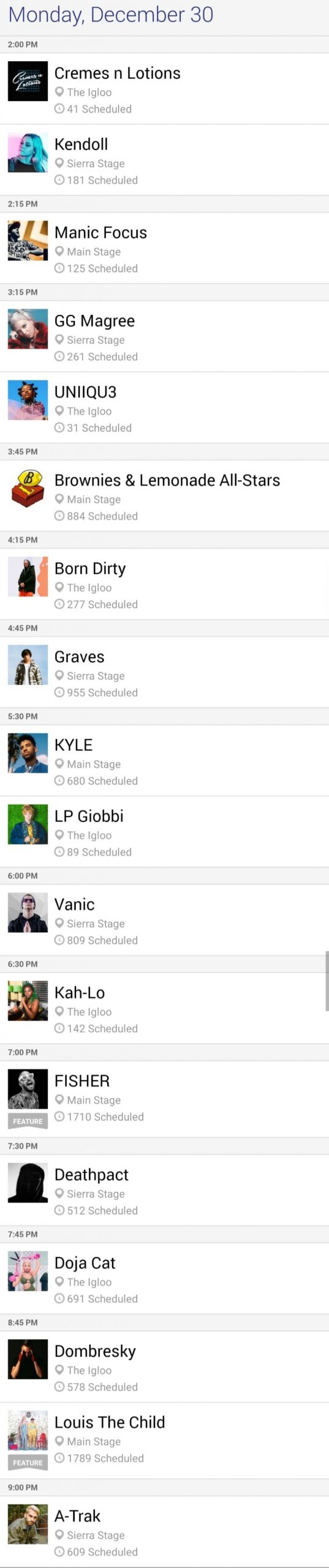 Save the images below for the set times and make sure to get the latest updates and more by downloading the SnowGlobe app on Apple or Android!