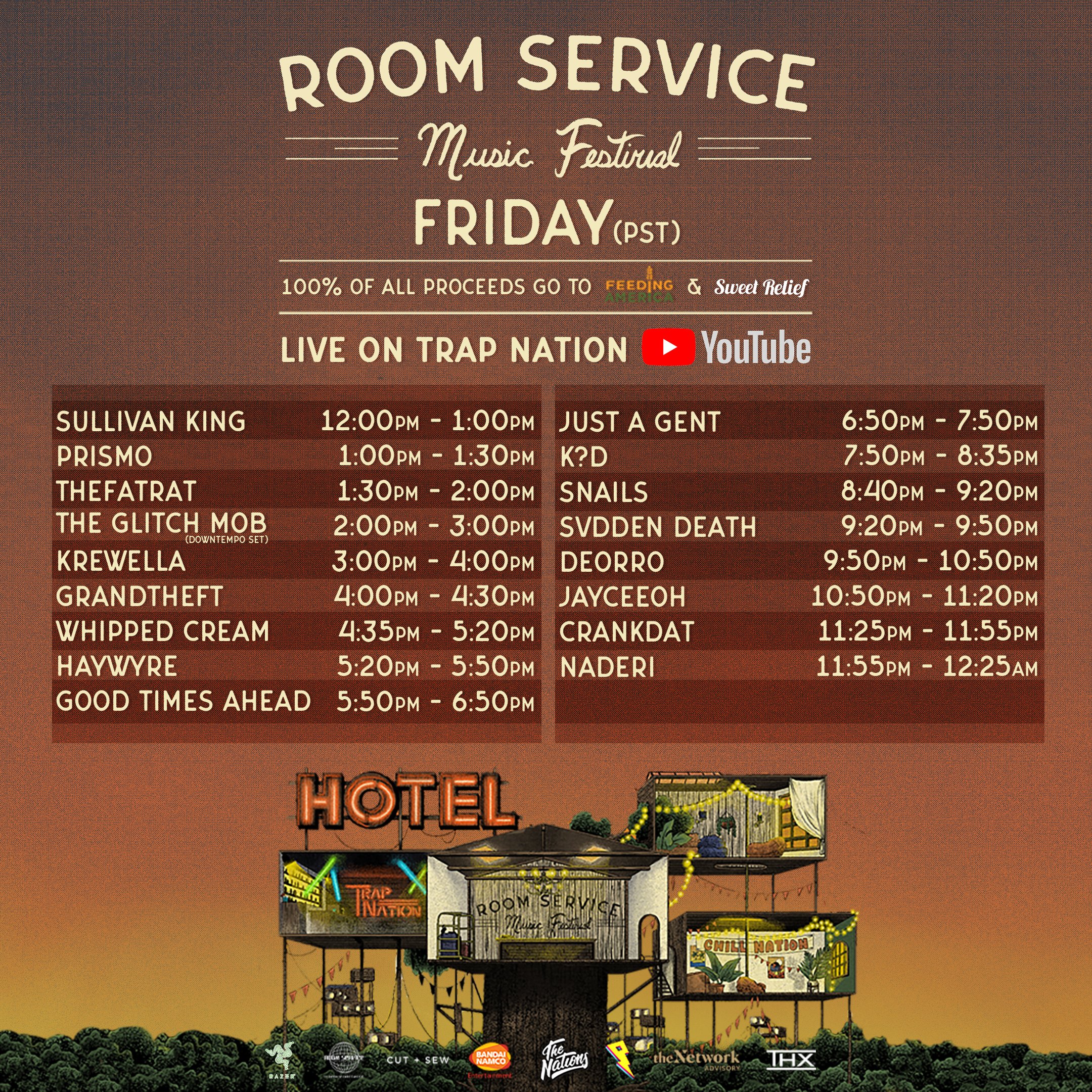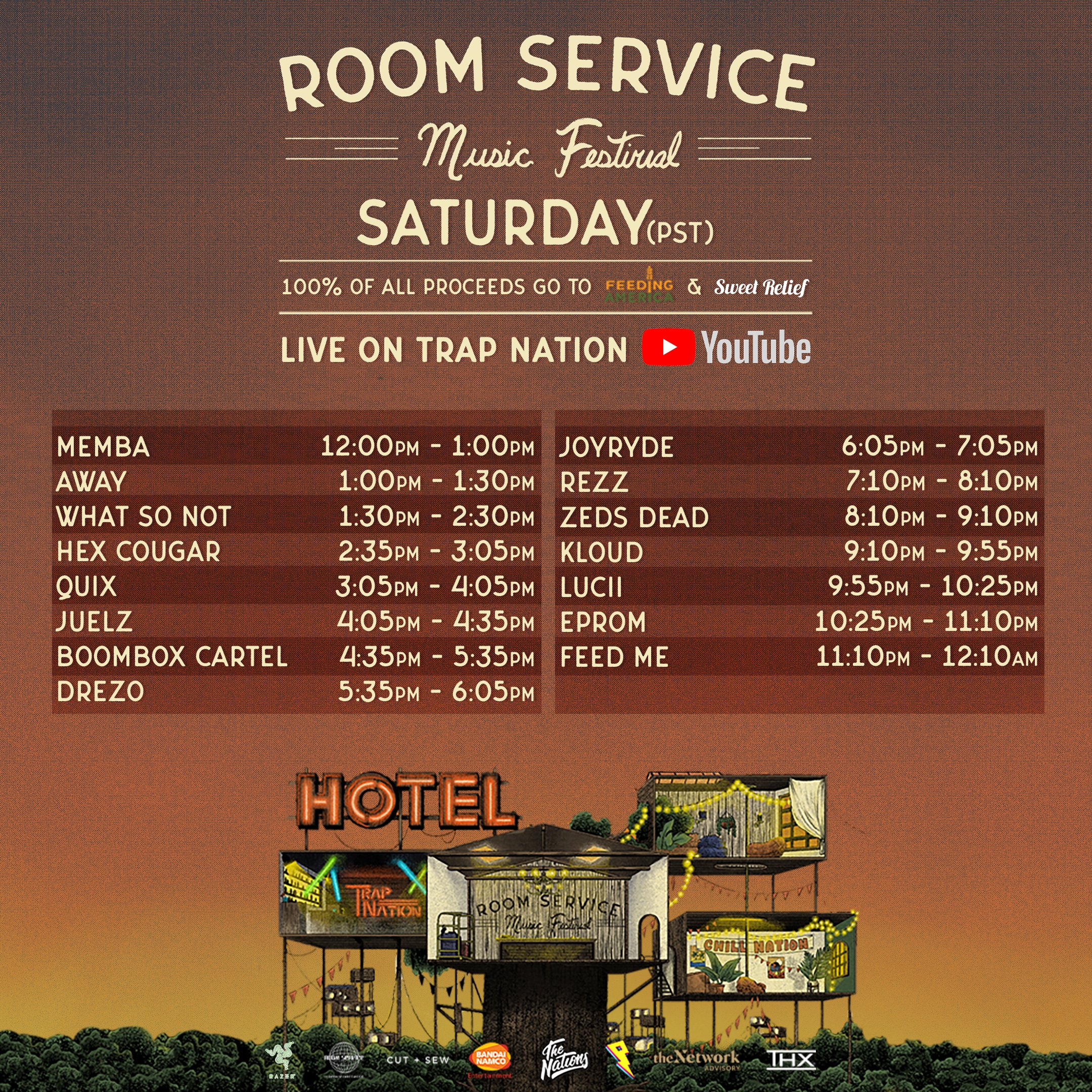 Tune in to the Room Service Festival – Trap Nation Channel on YouTube: