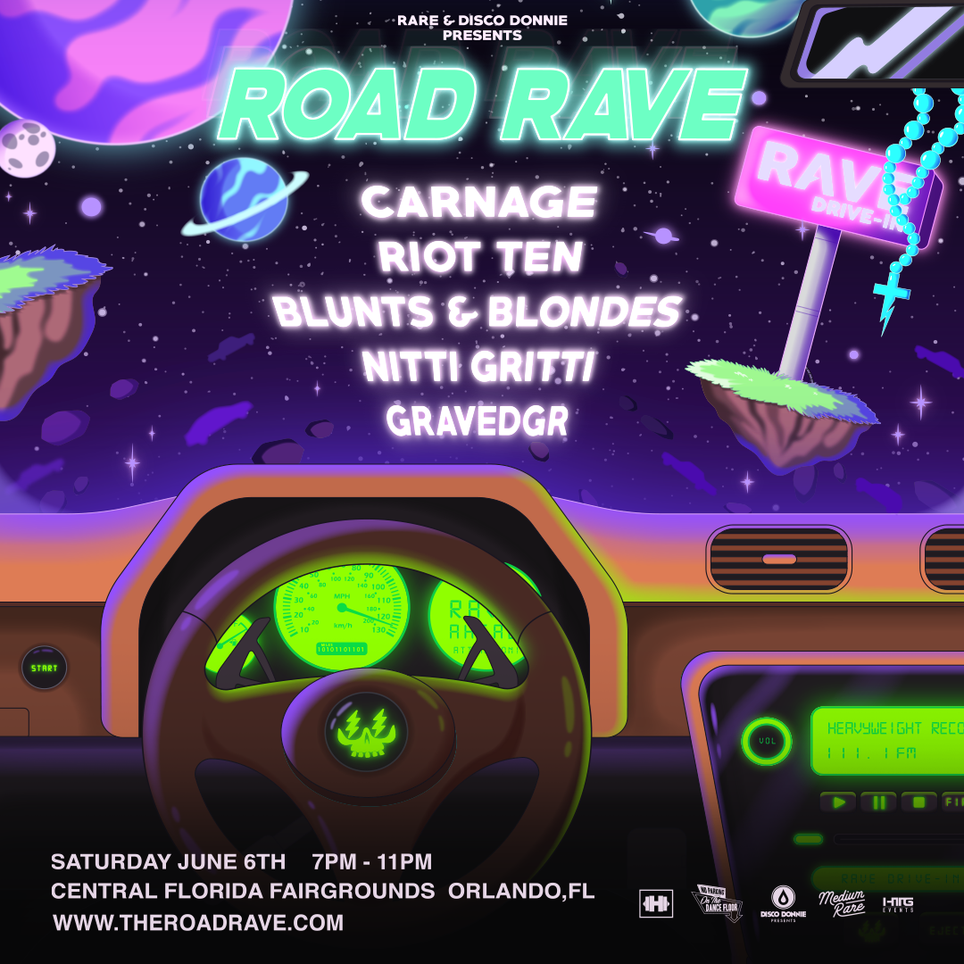 Carnage brings the Road Rave to Phoenix and Orlando with lineups featuring Hulk Gang, Riot Ten, Blunts & Blondes, and more!