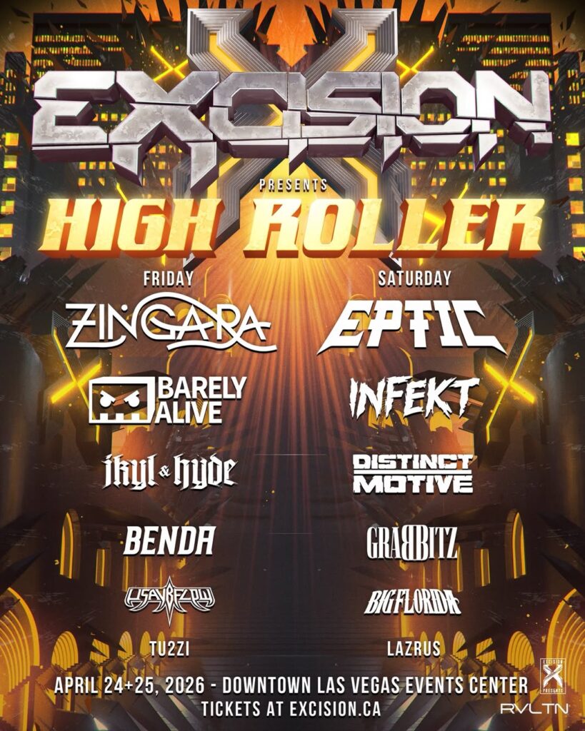 Come springtime, Excision Presents will be pulling out all the stops for a hard-hitting double header in Sin City. Next year’s edition of High Roller is landing at the Downtown Las Vegas Events Center on April 24-25, 2026, and some of the best and brightest in bass music are along for the ride.