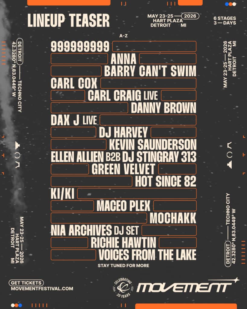 Paxahau is celebrating Movement Detroit’s 20th anniversary in 2026. Here are the first 17 headliners announced ahead of the milestone edition.