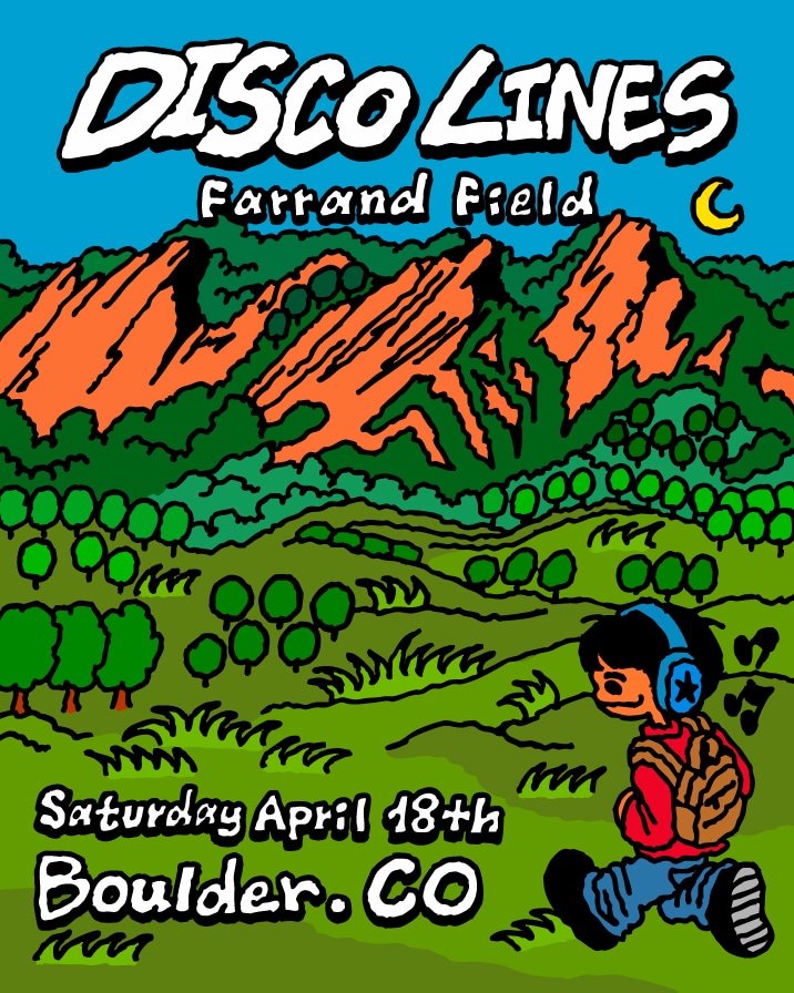 Make no mistake, though: The event marks yet another milestone in his continually unfolding career. While Disco Lines (real nam Thadeus Labuszewski) hails from Boulder, this is his first time headlining Farrand Field, which is situated on what happens to be the campus of his alma mater. Given that he came up playing college parties before graduating to local shows, the gathering stands out as a full-circle moment for the artist and his fans alike.